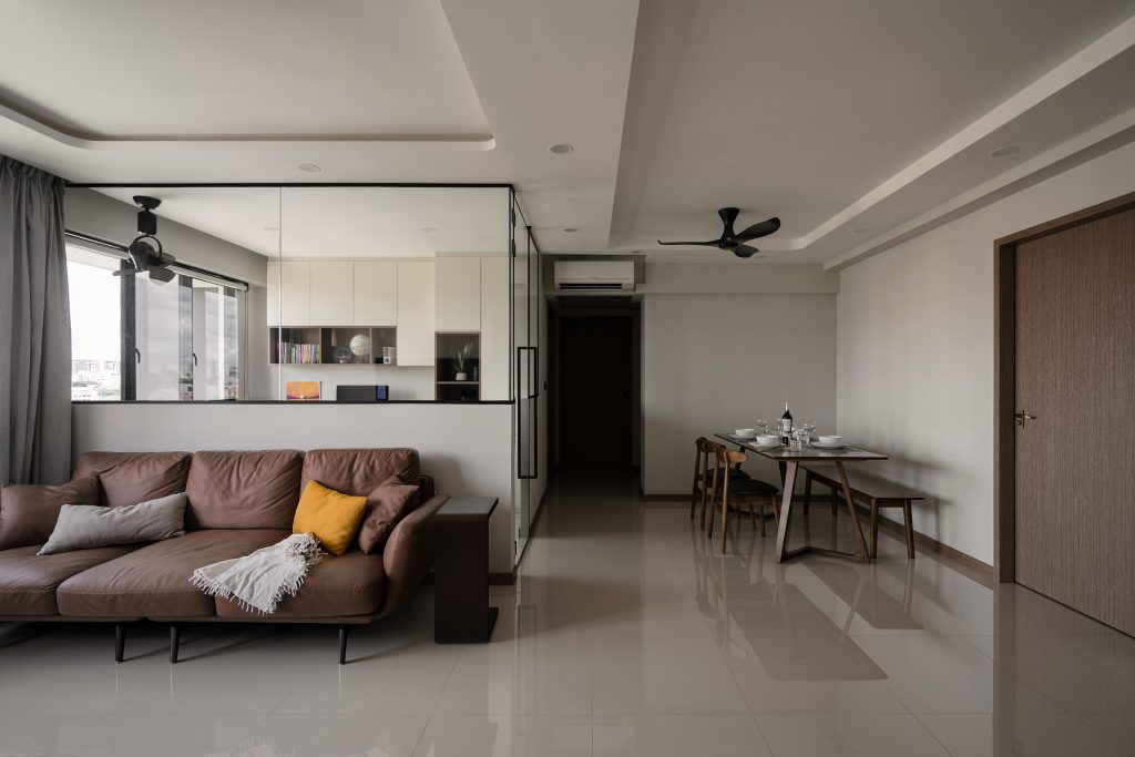 Adding light, neutral colors can further enhance the feeling of openness. Large windows and reflective surfaces, such as mirrors or glass partitions, bring in more natural light and create a brighter, more inviting living area. This makes your HDB flat not only functional but also a vibrant place for relaxation and family gatherings.
